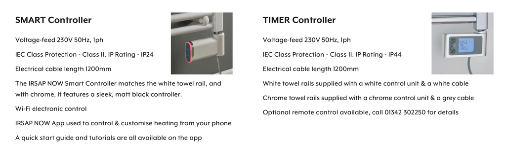 • IRSAP NOW SMART Controller supplied to match finish of towel rail
