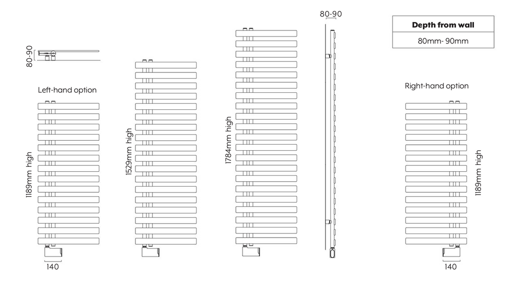 The left-handed configuration will be supplied with the collectors and element on the left-hand side of the towel rail, with the cross tubes off to the right.