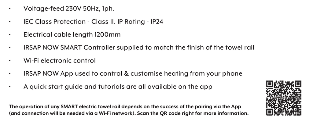 - IRSAP NOW SMART Controller supplied to match the finish of the towel rail