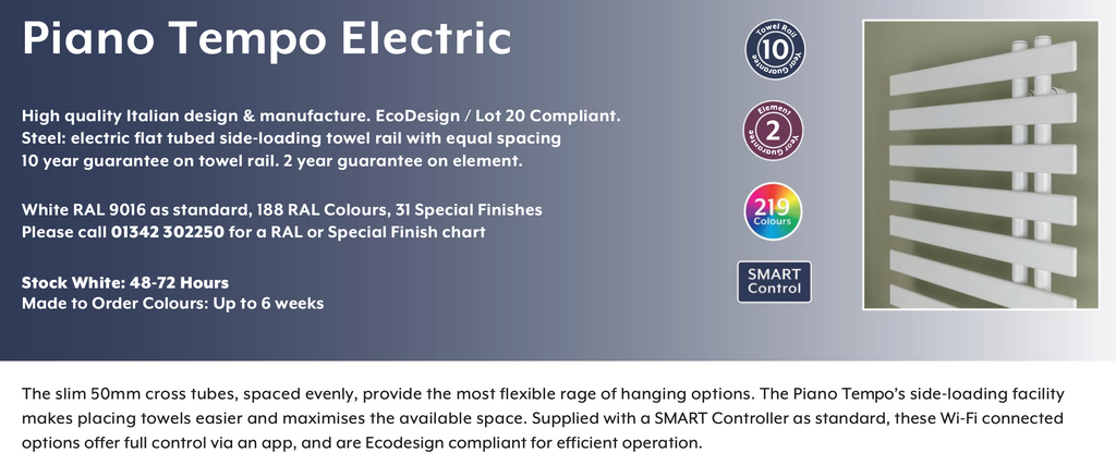 Why buy the The Radiator Company Piano Tempo Electric Towel Rail  from Hot Interiors?