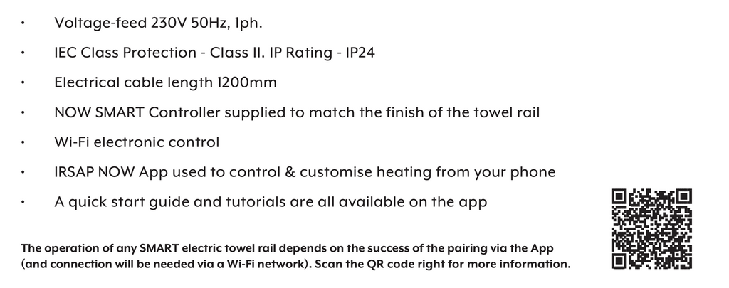 - NOW SMART Controller supplied to match the finish of the towel rail