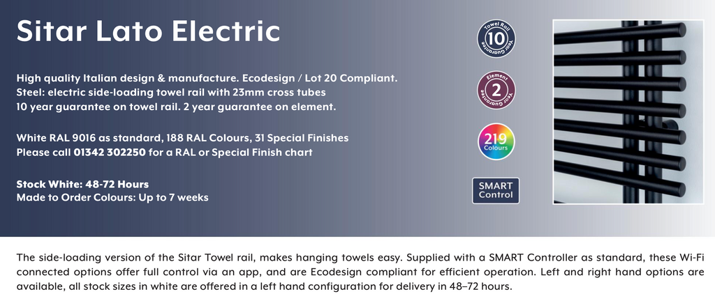 Why buy the The Radiator Company Sitar Lato Electric Towel Rail from Hot Interiors?