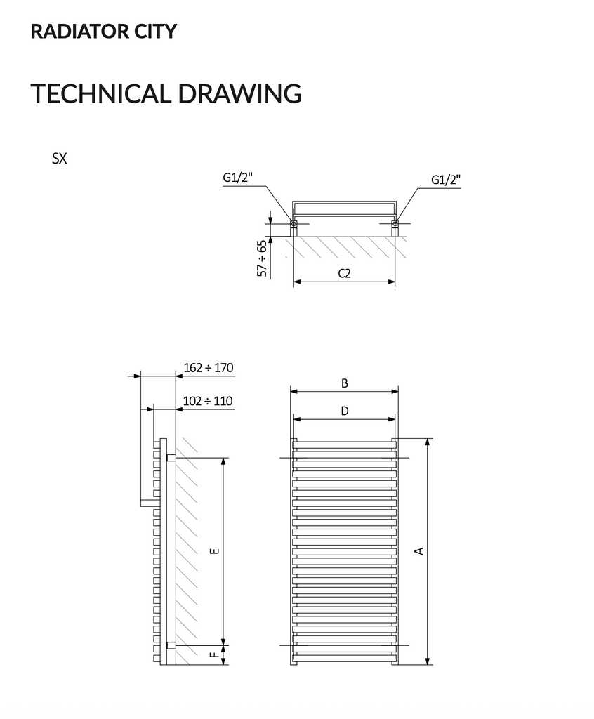 • Pipe Centres are Width less 30mm. (SX connections).  (Optional 50mm ZX connections)