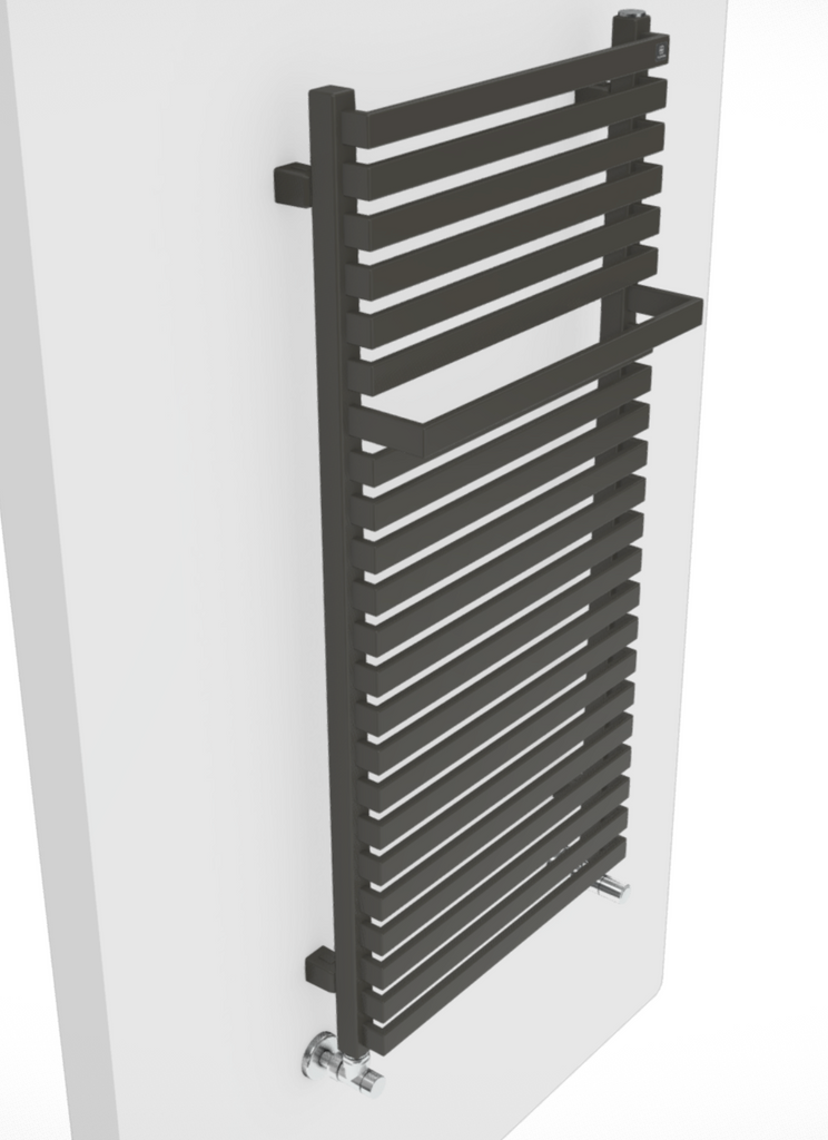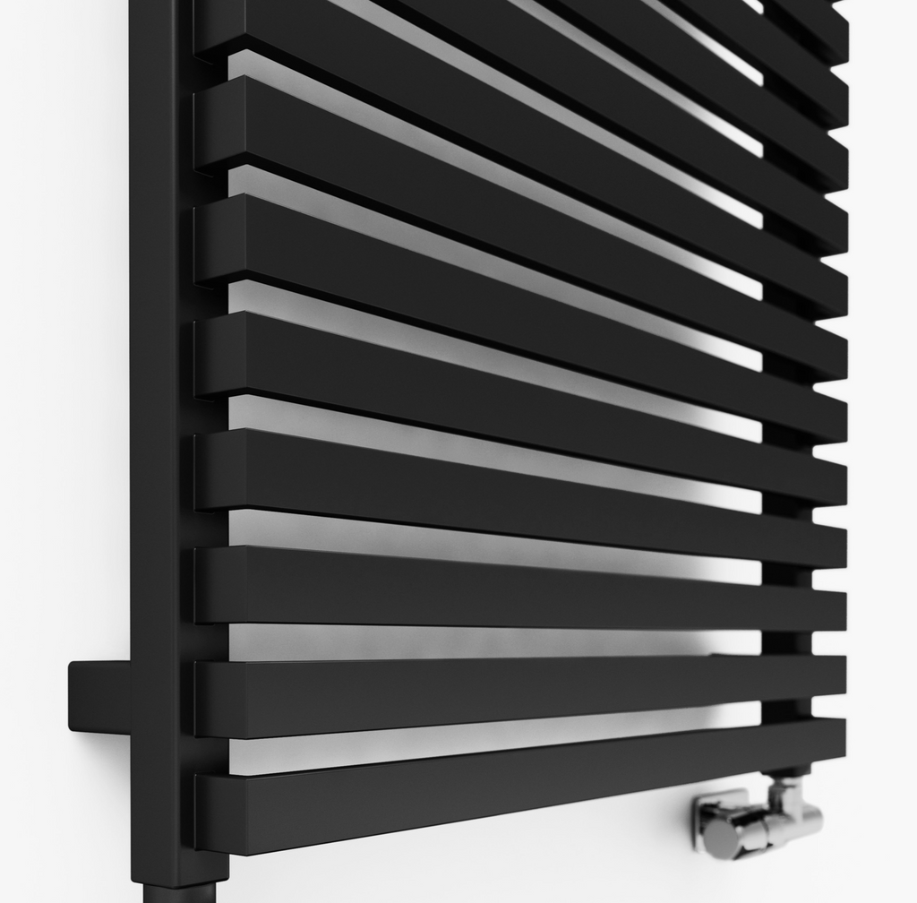 A geometric shape made of square collectors connected by flat tubes. In the upper section, one of the tubes has been pulled out to form a functional towel rail. The model will work well in modern, minimalist spaces of bathrooms and kitchens. Available in water, dual fuel and electric versions. A version with built-in One heater is also available (a City One model).