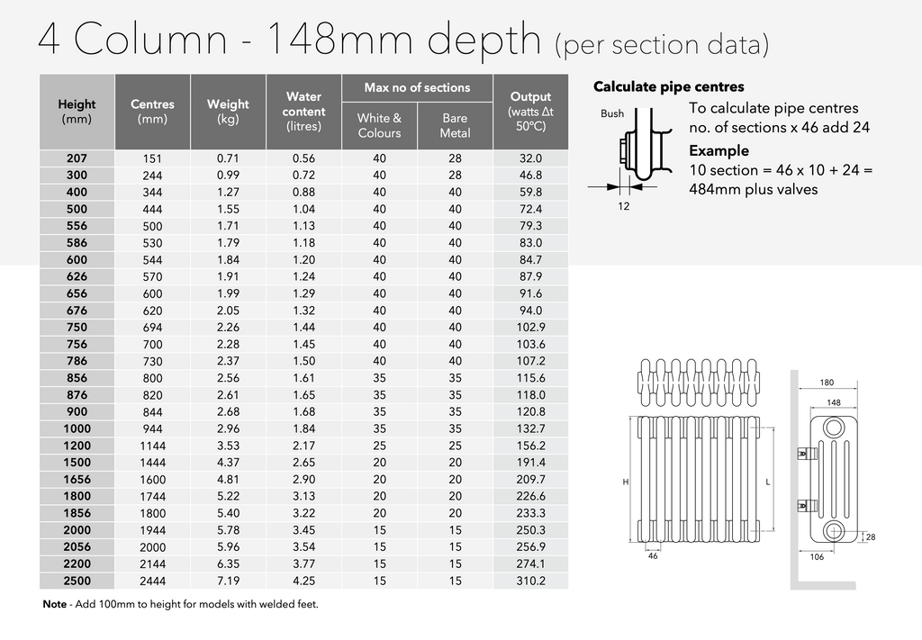 ** 4 Column - Depth 148mm