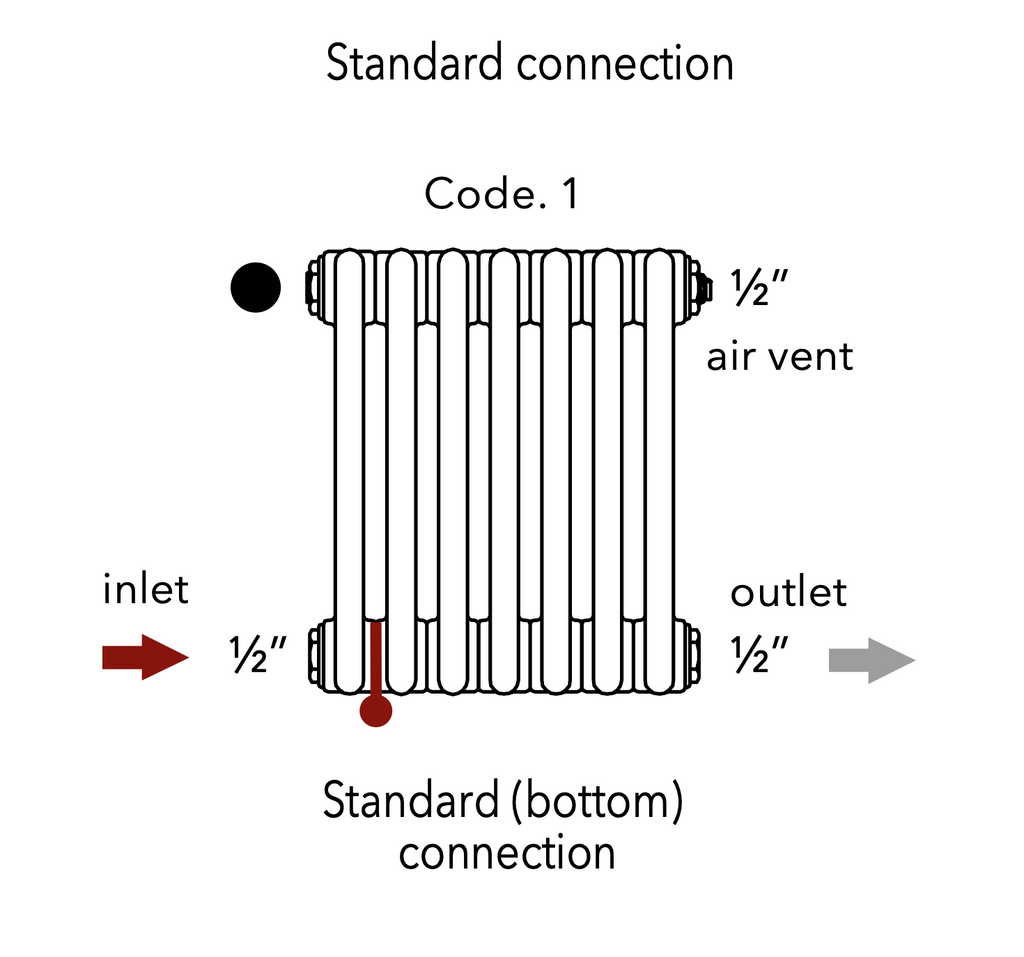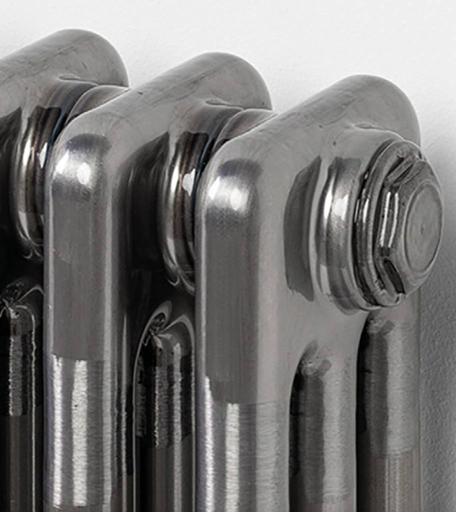 The classy Multisec Raw multi column radiator offers a contemporary industrial look with its polished and machined metal finish set beneath a deep lacquer. This radiator is available in any size chosen from the Multisec range and is made from the same 25mm diameter, 1.2mm steel with 1.5mm headers. Each radiator is supplied with wall brackets, plug and air vent. Capable of operating up to 8 bar (tested to 10 bar), each Multisec Raw radiator has ½”bsp-f connections (standard connection detail 08 = BBOE).