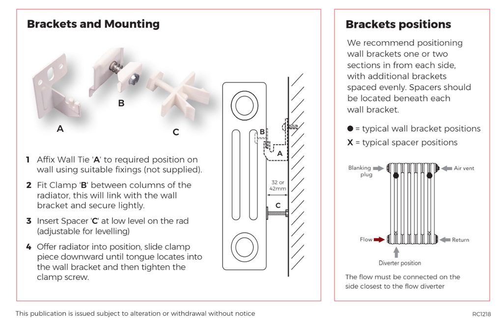 Wall brackets are supplied as standard, with slip on feet and a towel bar as optional extras.