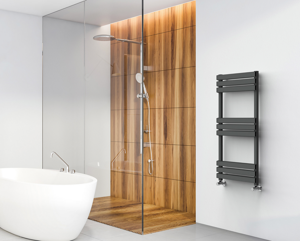 Geometric forms give the Hexon aluminium towel warmer bold, yet simple styling. Four popular heights are available in Textured Black or Grey. Using the same design detailing as the Ardor radiators, both towel rail and radiators can be paired within larger bathrooms. These lightweight aluminium designs are efficient and mark the latest materials trend in heated appliances.
